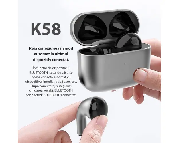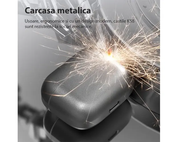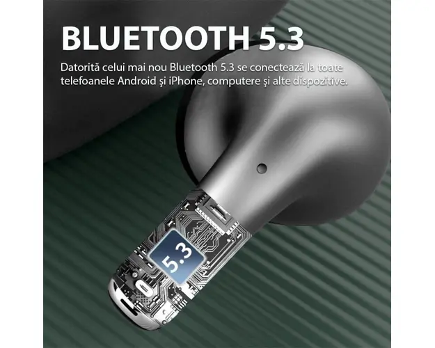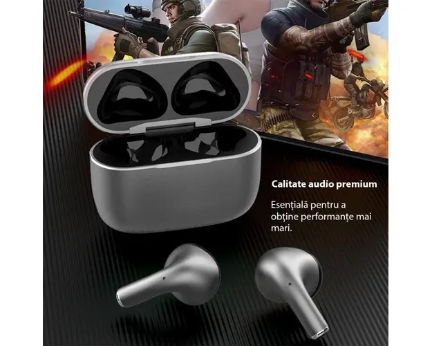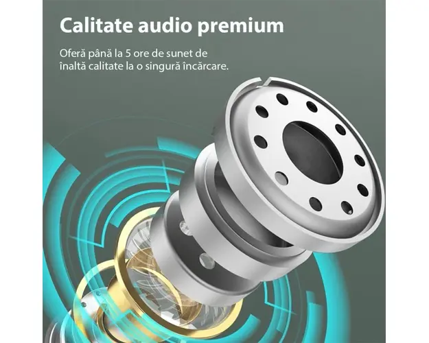Castile Bluetooth Sport Techstar® K58 au mod de estompare activ a zgomotului ambiental (ANC) şi un mod de patrundere care, dimpotriva, amplifica sunetele din jur chiar şi la volum crescut. Datorita celui mai nou Bluetooth 5.3 se conecteaza la toate telefoanele Android şi iPhone, computere şi alte dispozitive. Control tactil si control al volumului: Impreuna cu senzori tactili inteligenti, casti fara fir Gebuds poate obtine controlul suprem (controlul volumului disponibil) fara a utiliza telefonul si poate preveni in mare masura disconfortul, cum ar fi butonul fizic (90% din castile wireless: controlul volumului indisponibil). Cu un design ergonomic si reproiectat, castile wireless Gebuds se pot potrivi si ramane securizate in canalul urechii chiar si cu miscari intense. Sun Like a Pro: O calitate audio premium este esentiala pentru a obtine performante mai mari. Instalate cu tehnologia apt-X, castile wireless Gebuds ofera transmisie puternica, cu rata scazuta de biti si scalabilitate pentru sunet fara pierderi gratuit. Nimic mai important pentru a avea intotdeauna muzica cu tine in timpul celui mai dificil antrenament. Durata mare de viata a bateriei: Numai castile wireless ofera pana la 5 ore de sunet de inalta calitate la o singura incarcare, iar carcasa de incarcare inclusa ofera 4 incarcari suplimentare, oferind 25 de ore de redare totala. Imperecherea intr-un singur pas si rezistenta la apa IPX5: Pur si simplu scoateti castile wireless din carcasa de incarcare si se vor conecta automat la telefon (dupa ce au fost imperecheate prima data). Rezistenta la apa IPX5 le face ideale pentru antrenamente si alergari intense. Compatibilitate universala: Casti wireless Gebuds Compatibile cu majoritatea playerelor de muzica fara fir, inclusiv iPhone, Samsung, Huawei, smartphone-uri Android, PC si Mac. Specificatii: Versiunea Bluetooth: 5.3 Dimensiune difuzor: unitate bobina mobila de 10 mm Raspuns in frecventa: 20Hz~20kHz Sensibilitate: 105 dB Impedanta: 32 ohmi Sensibilitate MIC: -38dB Tip baterie pentru casti: baterie litiu-ion polimer (35mAh 3.7V) Timp de incarcare a castilor: in 1,5 ore Tipul bateriei din compartimentul de incarcare: baterie litiu-ion polimer (300mAh 3.7V) Timp de incarcare al compartimentului de incarcare: in 1,5 ore Timp de redare a muzicii: 5h Timp de asteptare: 100 h Aspect material: aliaj de zinc Functia comutator Hall: deschideti capacul si conectati. Pachetul include: 2 x casti Bluetooth 1 x cutie pentru casti 1 x cablu de incarcare. Produsul cu denumirea Casti Bluetooth sport Techstar® K58, Bluetooth 5.3, Microfon, Control prin atingere, Rezistente la apa, potrivite pentru muzica/sport/apeluri, Carcasa Magnetica, Gri face parte din brandul A4tech, se afla in categoria Hartii si subcategoria