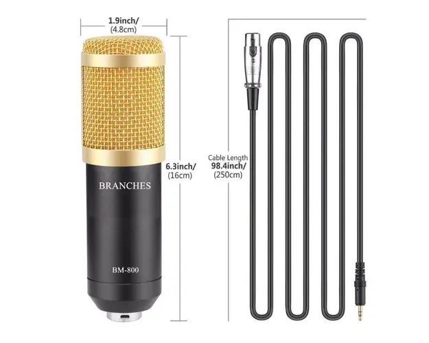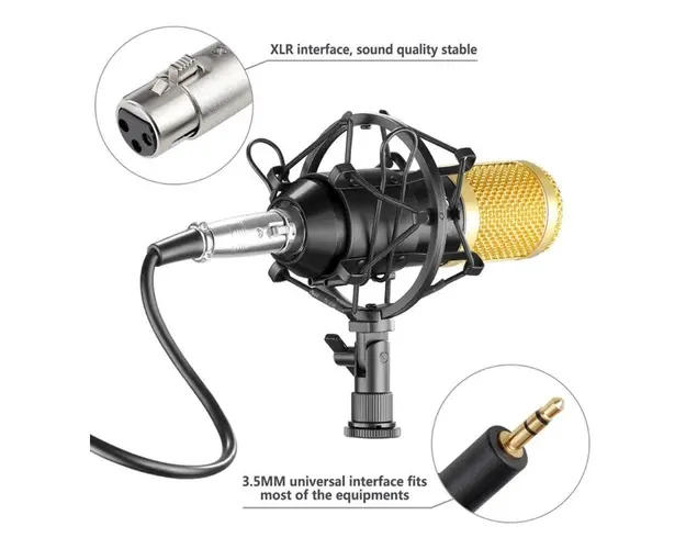 Microfon Profesional BM800 Techstar®, Inregistrare Vocala si Karaoke, Gold Negru