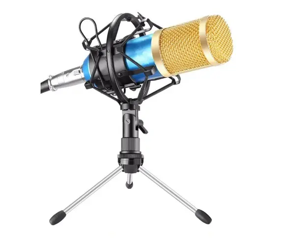 Microfonul BM800 vine cu un nou stand mai mic si cu un capac de spuma care apara inregistrarea vocii. Este ideal pentru statiile radio, karaoke si studiourile de inregistrare. Caracteristici: Ideal pentru studio radio, studiouri de sonorizare vocala, statii, posturile TV, streaming, gaming etc. Clema reglabila pentru a fi montat pe desktop cu usurinta, fixeaza in siguranta orice suport pentru microfon pentru a fi usor de instalat si convenabil de utilizat. Specificatii: Impedanta de iesire: 150Ohm+ / -30% Interfata mufa audio: 3.5mm Nivel Zgomot: 78dB XLR Lungime cablu: 2.5m Frecventa raspuns: 20Hz-16kHz Impedanta: Mai mare de 1000Ohm Curent: 3mA Grosime maxima permisa de clema de prindere: 45mm Sensibilitate: -38dB+ / -2dB Equivalent Noise: 16dBA Interfata mufa audio: 3.5mm Lungime maxima a bratului: 370mm Pachetul Include: 1 X Microfon 16 * 4.5cm 1 X Plasa Anti Stropi 15.5cm 1 X Cadru Negru de plastic anti-shock 1 X Bumbac anti-vant negru 1 X Clema Negru 1 X Cablu audio 2.5m 1 X Manual de Utilizare Produsul cu denumirea Microfon Profesional BM800 Techstar®, Inregistrare Vocala si Karaoke, Gold Negru face parte din brandul A4tech, se afla in categoria Adaptoare wireless si subcategoria