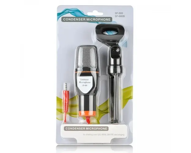 Microfonul SF666 vine cu un nou stand mai compact. Este ideal pentru statiile radio, karaoke si studiourile de inregistrare. Specificatii : Frecventa: 50Hz-16KHz Sensibilitate: -55dB ± 2dB Sample Rate: 48kHz Impedance: 2.2 K Bit Rate: 16bit Greutatea microfonului: 420g; Dimensiuni: 133 * 33 mm Materialul microfonului: plasa din otel + aluminium. Lungime cablu 1.8 metrii Conectivitate: 3.5mm Microfon: Condenser Caracteristici : Ofera o sensibilitate ridicata pentru a captura nuante subtile care creaza un sunet de inalta calitate; Ideal pentru studiouri de radio, de voce, etc.; Functioneaza pe orice device ce accepta mufa 3.5mm; Mini Trepied pliabil, design compact Continut pachet: 1 x Microfon SF666 1 x Trepied pliabil 1 x Burete anti stropi / antivant Produsul cu denumirea Microfon Profesional SF666 Techstar®, Inregistrare Vocala Si Karaoke, Negru face parte din brandul A4tech, se afla in categoria Adaptoare wireless si subcategoria