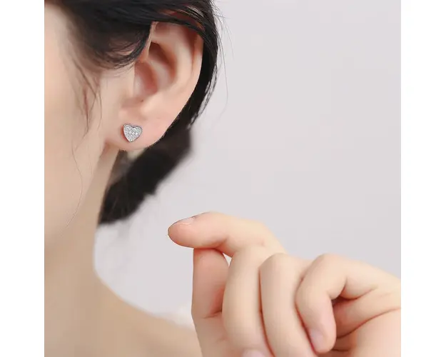 Cercei argint 925, JW692, model inima, placati cu rodiu