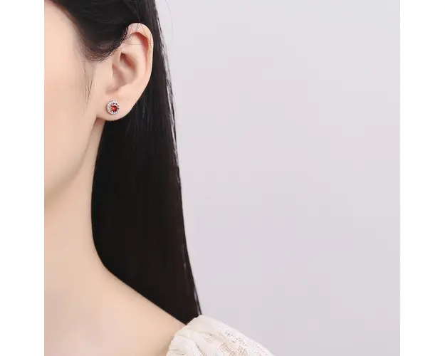 Cercei argint 925, JW785, model zirconiu rosu, placati cu rodiu