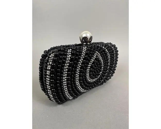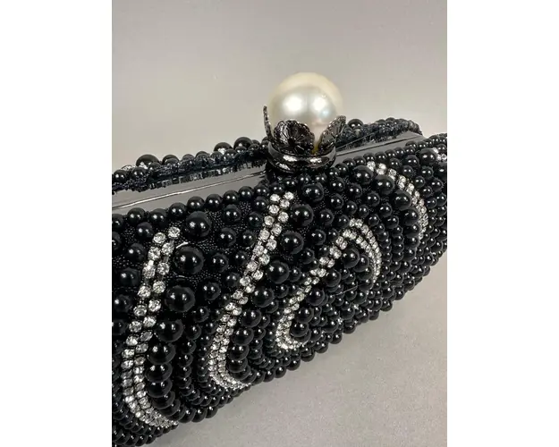 Clutch negru material satinat si lurexBretele detasabile din lantUn compartimentDimensiuni :Inaltime - 13 cmLatime - 22 cm Produsul cu denumirea Clutch Perle Negru Strasuri face parte din brandul , se afla in categoria Accesorii si subcategoria