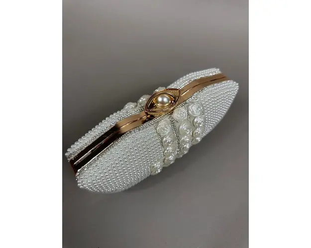 Clutch accesorizat cu perle albe si strasuriBretele detasabile din lantUn compartimentDimensiuni :Inaltime - 13 cmLatime - 22 cm Produsul cu denumirea Clutch Royal White face parte din brandul , se afla in categoria Accesorii si subcategoria