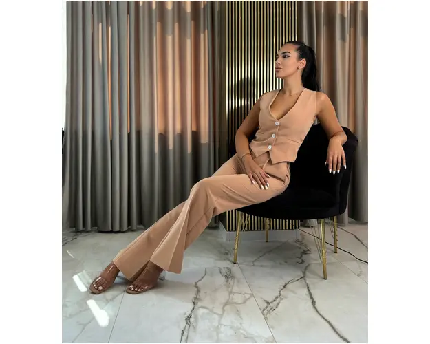 Costumul Riviera este o alegere sofisticata si moderna, compus din pantaloni cu croi larg, care confera un aspect fluid si elegant, oferind totodata confort. Vesta cambrata pe corp adauga structura si defineste talia, creand un echilibru perfect intre lejeritatea pantalonilor si eleganta siluetei.CaracteristiciNasturi la vestaFermoar ascuns la pantalonCostum regular fit cu pantaloni dreptiCompozitie:Material 25% rayon, 70% polyester, 5% spandexStofa de costumInformatii: Informatii Suplimentare la telefon 0768 807 388Produse Realizate in Atelierul GLAMO. Produsul cu denumirea Costum Riviera ( 2 piese ) BEJ face parte din brandul , se afla in categoria Costume de baie si subcategoria