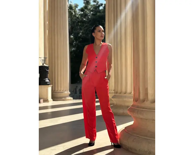 Costumul Riviera este o alegere sofisticata si moderna, compus din pantaloni cu croi larg, care confera un aspect fluid si elegant, oferind totodata confort. Vesta cambrata pe corp adauga structura si defineste talia, creand un echilibru perfect intre lejeritatea pantalonilor si eleganta siluetei.CaracteristiciNasturi la vestaFermoar ascuns la pantalonCostum regular fit cu pantaloni dreptiCompozitie:Material 25% rayon, 70% polyester, 5% spandexStofa de costumInformatii: Informatii Suplimentare la telefon 0768 807 388Produse Realizate in Atelierul GLAMO. Produsul cu denumirea Costum Riviera ( 2 piese ) Rosu face parte din brandul , se afla in categoria Costume de baie si subcategoria