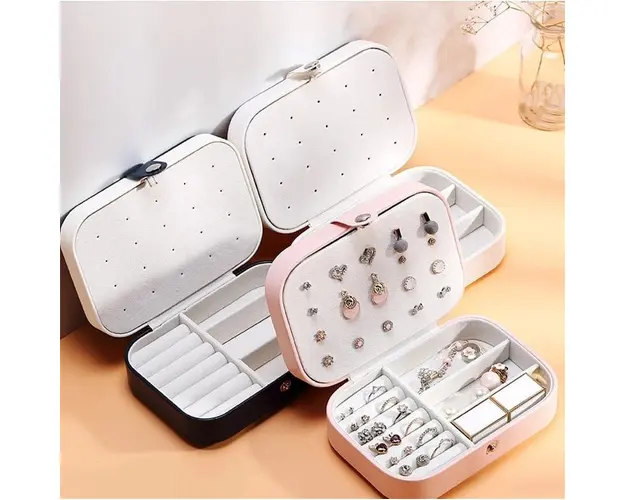 6 compartimente inele/cercei; 3 compartimente pentru bratari si coliere; 5 agatatori pentru bratari sau coliere; 1 suport cercei; Material: piele ecologica; Dimensiune: 16 x 11 x 5 cm. Important : Culoarea produsului poate varia usor datorita luminozitatii monitorului. Din cauza varietatii instrumentelor de masura, pot exista usoare erori de cm. Produsul cu denumirea Cutie pentru bijuterii, Hesperia AC027, Alb/Albastru face parte din brandul , se afla in categoria Bijuterii argint dama si subcategoria