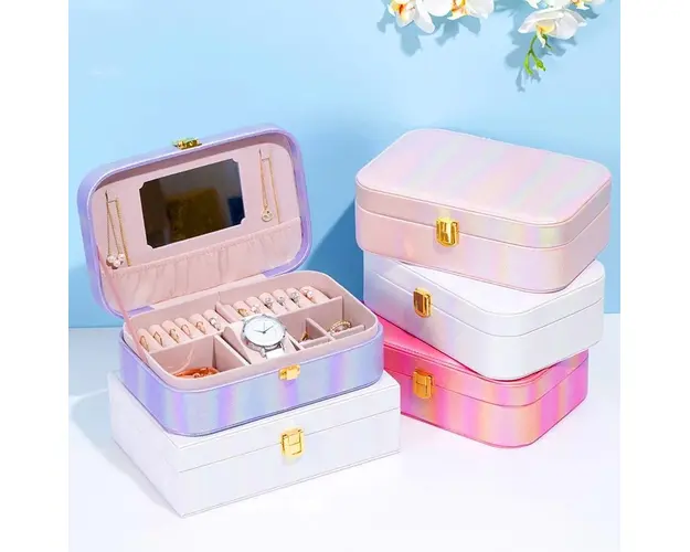 12 compartimente inele/cercei; 2 agatatori pentru coliere/bratari; 5 compartimente bijuterii; 1 compartiment pentru ceas; capac cu oglinda; Material: piele ecologica; Dimensiune: 22 x 15 x 7 cm. Important : Culoarea produsului poate varia usor datorita luminozitatii monitorului. Din cauza varietatii instrumentelor de masura, pot exista usoare erori de cm. Produsul cu denumirea Cutie pentru bijuterii, Ysabel AC015, Alb face parte din brandul , se afla in categoria Bijuterii argint dama si subcategoria