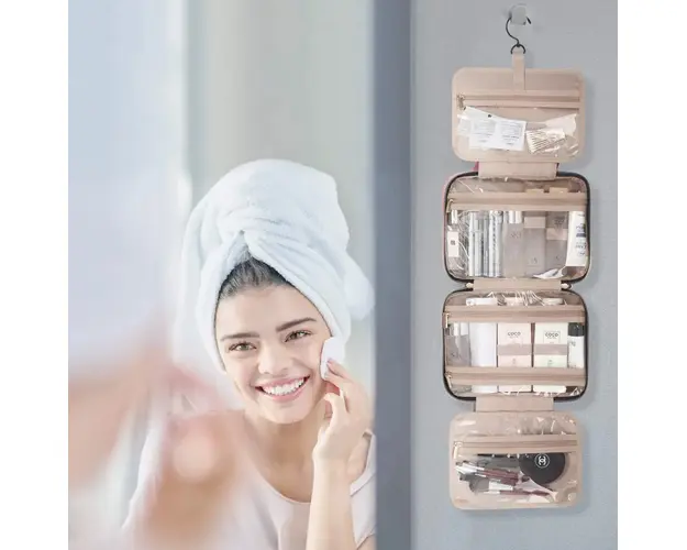 O geanta de cosmetice este un accesoriu practic si elegant, conceput pentru a organiza si transporta produsele de infrumusetare. Dimensiunea compacta si designul ergonomic o fac usor de transportat in geanta de mana sau bagaj, fiind ideala pentru calatorii sau utilizare zilnica. Interior captusit; 4 compartimente; 1 buzunar exterior fata; 1 umeras de agatare (max. 4 kg); material: poliester impermeabil; dimensiuni: 27.9 x 7.6 x 18.8 cm; Important : Culoarea produsului poate varia usor datorita luminozitatii monitorului. Din cauza varietatii instrumentelor de masura, pot exista usoare erori de cm. Produsul cu denumirea Geanta cosmetice, Paloma GT3005, Negru face parte din brandul Delis, se afla in categoria Accesorii si subcategoria