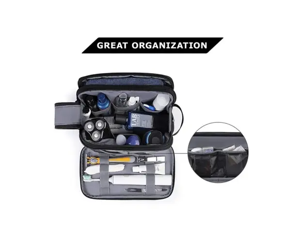 O geanta de cosmetice este un accesoriu practic si elegant, conceput pentru a organiza si transporta produsele de infrumusetare. Dimensiunea compacta si designul ergonomic o fac usor de transportat in geanta de mana sau bagaj, fiind ideala pentru calatorii sau utilizare zilnica. Interior captusit; 1 compartiment principal; 1 buzunar exterior fata; 1 buzunar exterior spate; multiple spatii cu elastic; material: poliester impermeabil; dimensiuni: 24 x 11 x 16 cm; Important : Culoarea produsului poate varia usor datorita luminozitatii monitorului. Din cauza varietatii instrumentelor de masura, pot exista usoare erori de cm. Produsul cu denumirea Geanta cosmetice, Quinlan GT3013, Negru face parte din brandul Delis, se afla in categoria Accesorii si subcategoria
