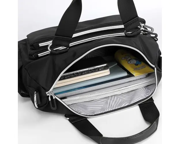 Detalii produs: 1 compartiment principal; 1 buzunar interior cu fermoar; 2 buzunare interioare fara inchidere; 1 buzunar exterior spate cu fermoar; 2 buzunare exterioare fata cu fermoar; 2 buzunare laterale fara inchidere; material: nylon impermeabil; bareta ajustabila si detasabila; dimensiuni: 31 x 12 x 27 cm. Important: Nuanta produsului poate varia usor, datorita luminozitatii monitorului, datorita varietatilor instrumentelor de masura, pot exista usoare erori de cm! Produsul cu denumirea Geanta dama, Harmony GT2126, Gri face parte din brandul Delis, se afla in categoria Fete si subcategoria