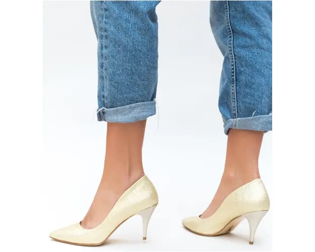 Produsul cu denumirea Pantofi Buhas Aurii face parte din brandul Exist shoes, se afla in categoria Sandale cu toc si subcategoria