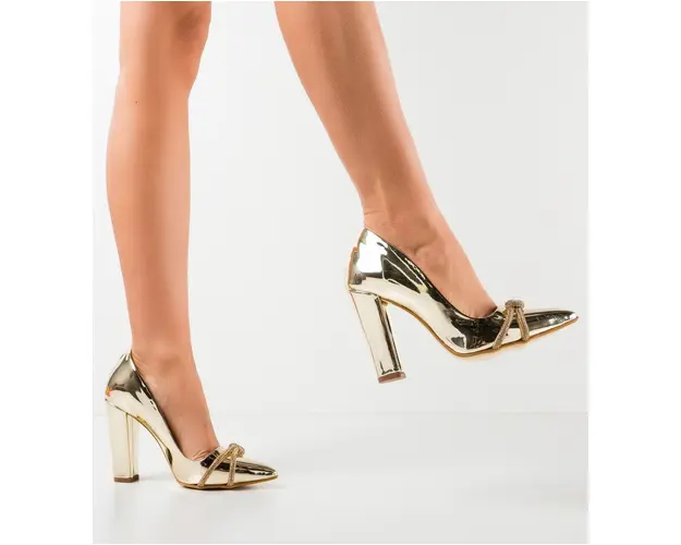 Produsul cu denumirea Pantofi dama Damaj Aurii face parte din brandul Exist shoes, se afla in categoria Sandale cu toc si subcategoria