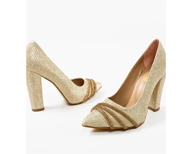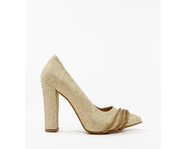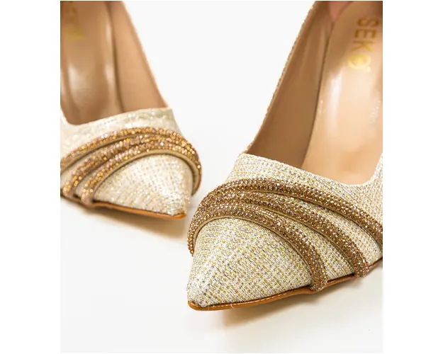 Produsul cu denumirea Pantofi dama Jusyne Aurii face parte din brandul Exist shoes, se afla in categoria Sandale cu toc si subcategoria