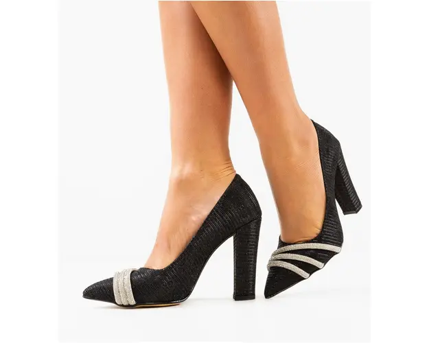 Produsul cu denumirea Pantofi dama Jusyne Negri face parte din brandul Exist shoes, se afla in categoria Sandale cu toc si subcategoria