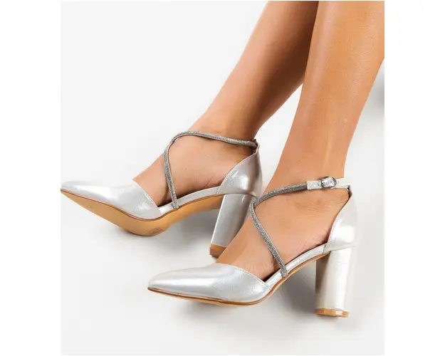 Produsul cu denumirea Pantofi dama Klamara Argintii face parte din brandul Mek, se afla in categoria Sandale cu toc si subcategoria