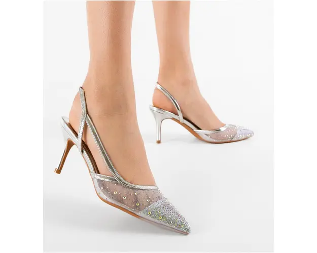 Produsul cu denumirea Pantofi dama Melite Argintii face parte din brandul Cr7 cristiano ronaldo, se afla in categoria Sandale cu toc si subcategoria