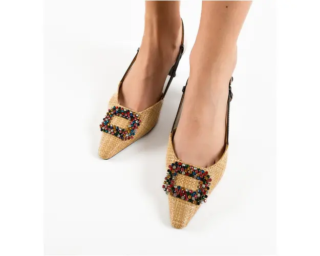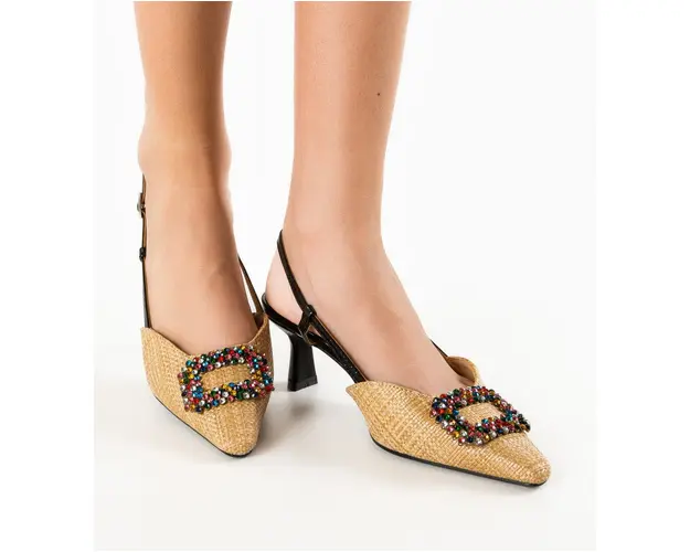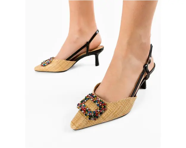 Produsul cu denumirea Pantofi dama Rafiana Bej face parte din brandul Cr7 cristiano ronaldo, se afla in categoria Sandale cu toc si subcategoria
