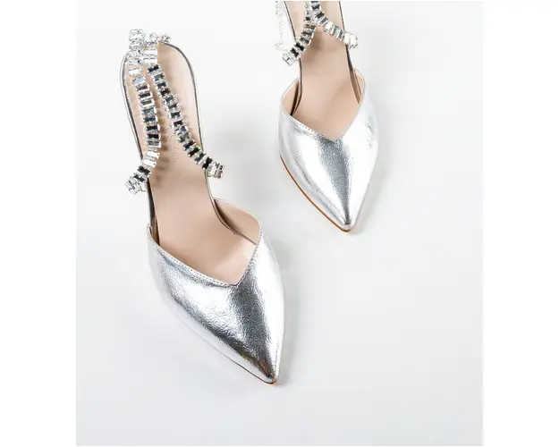 Produsul cu denumirea Pantofi dama Snaider Argintii face parte din brandul Exist shoes, se afla in categoria Sandale cu toc si subcategoria