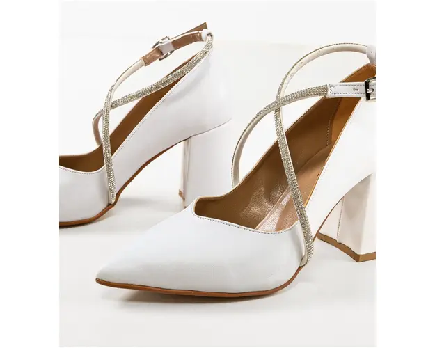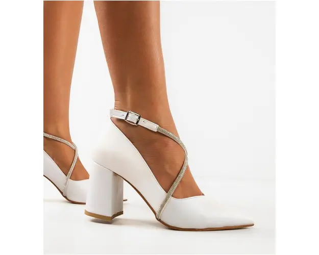 Produsul cu denumirea Pantofi dama Yezyga Albi face parte din brandul Exist shoes, se afla in categoria Sandale cu toc si subcategoria