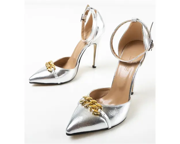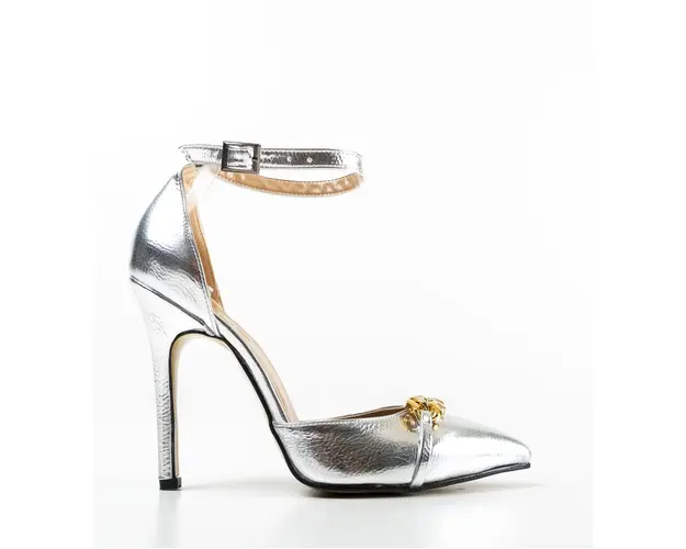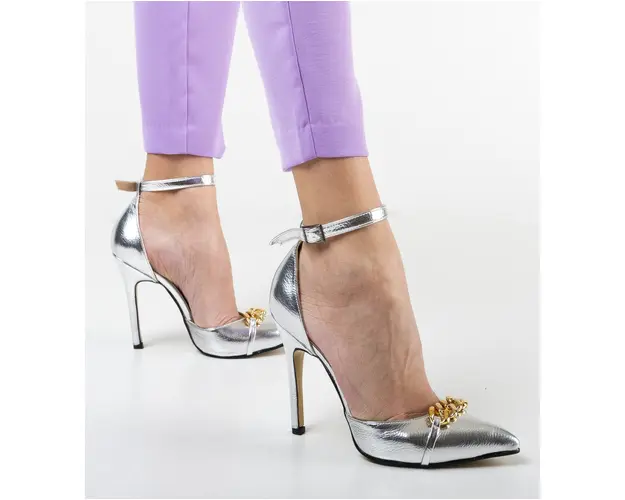 Produsul cu denumirea Pantofi Deler Argintii face parte din brandul Exist shoes, se afla in categoria Sandale cu toc si subcategoria