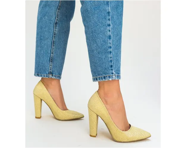 Produsul cu denumirea Pantofi Tasi Aurii face parte din brandul Exist shoes, se afla in categoria Sandale cu toc si subcategoria
