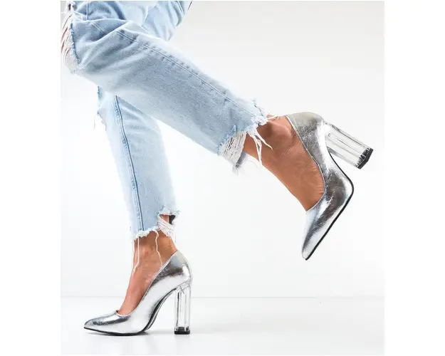 Produsul cu denumirea Pantofi Uflet Argintii face parte din brandul Exist shoes, se afla in categoria Sandale cu toc si subcategoria