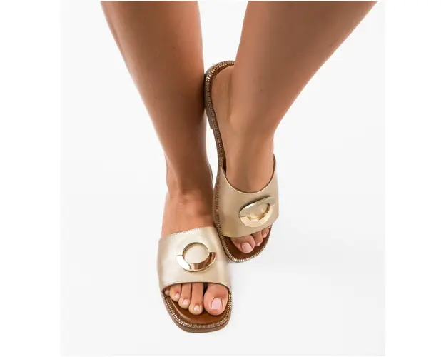 Produsul cu denumirea Papuci dama Emelina Aurii face parte din brandul Aldo, se afla in categoria Sandale cu toc si subcategoria