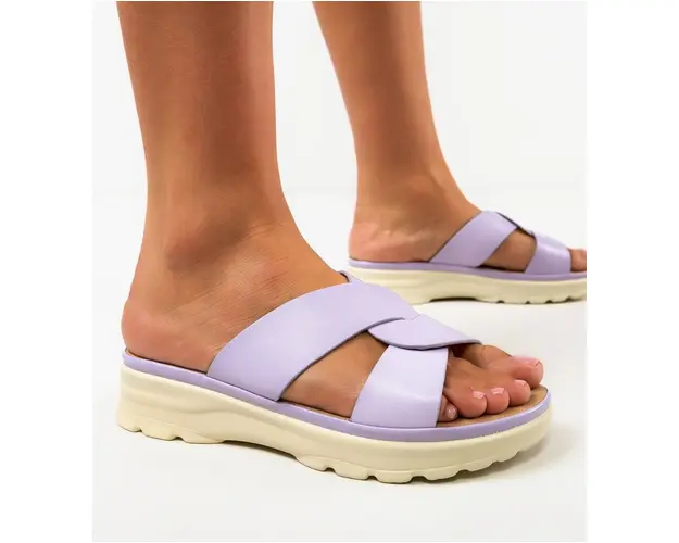 Produsul cu denumirea Papuci dama Flapy Mov face parte din brandul Qing, se afla in categoria Sandale cu toc si subcategoria