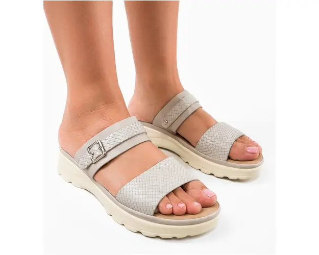 Produsul cu denumirea Papuci dama Flavas Gri face parte din brandul Qing, se afla in categoria Sandale cu toc si subcategoria