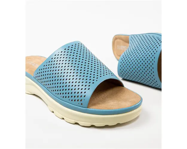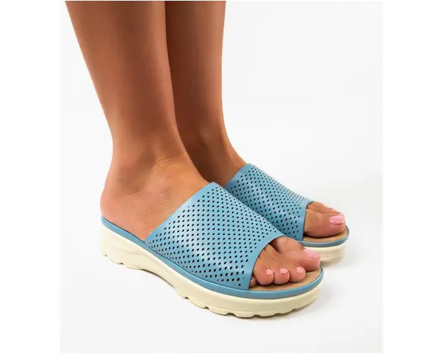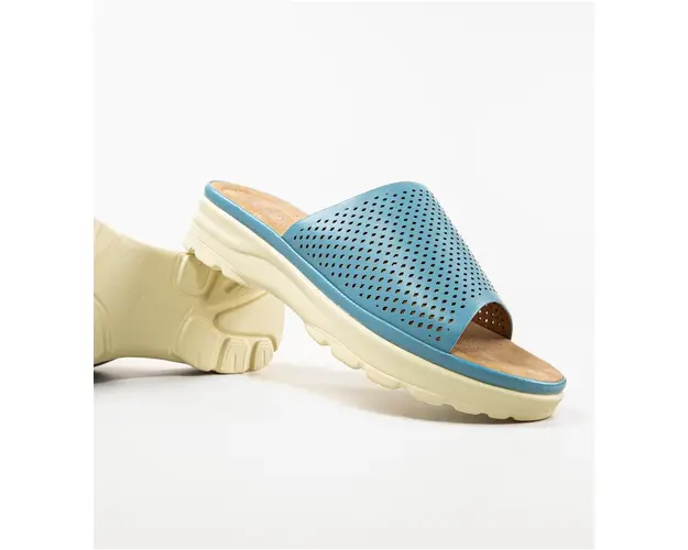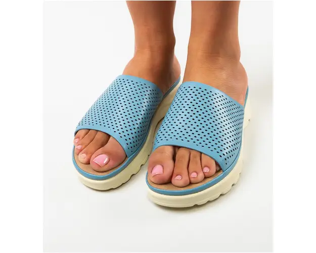 Produsul cu denumirea Papuci dama Kankan Albastri face parte din brandul Qing, se afla in categoria Sandale cu toc si subcategoria
