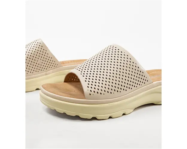 Produsul cu denumirea Papuci dama Kankan Bej face parte din brandul Qing, se afla in categoria Sandale cu toc si subcategoria