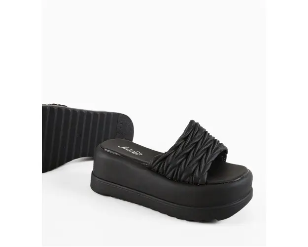 Produsul cu denumirea Papuci dama Lenomo Negri face parte din brandul Mek, se afla in categoria Sandale cu toc si subcategoria