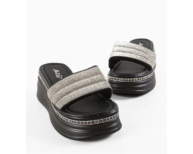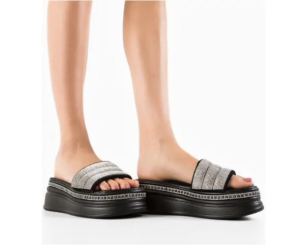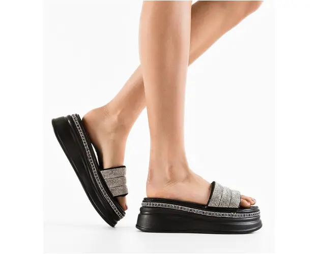 Produsul cu denumirea Papuci dama Magos Negri face parte din brandul Mek, se afla in categoria Sandale cu toc si subcategoria