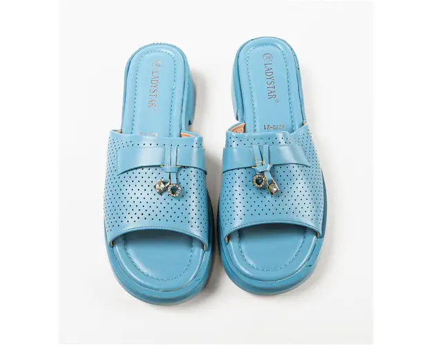 Produsul cu denumirea Papuci dama Rufus Albastri face parte din brandul Qing, se afla in categoria Sandale cu toc si subcategoria