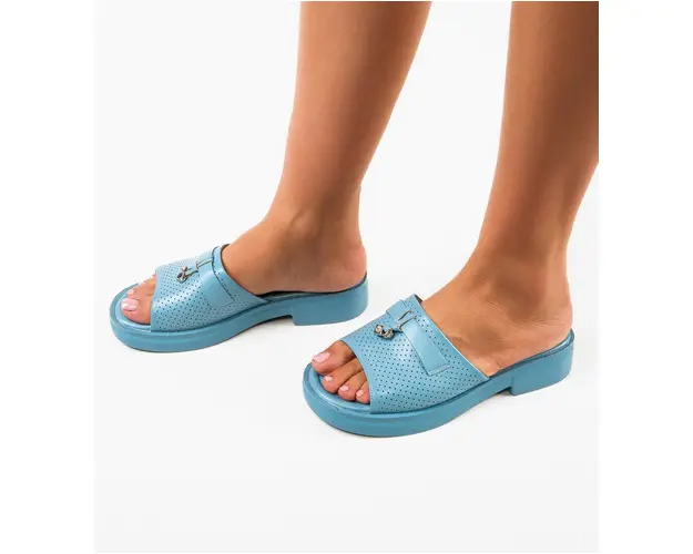 Produsul cu denumirea Papuci dama Rufus Albastri face parte din brandul Qing, se afla in categoria Sandale cu toc si subcategoria