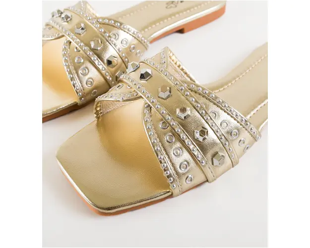 Produsul cu denumirea Papuci dama Sydney Aurii face parte din brandul Mek, se afla in categoria Sandale cu toc si subcategoria