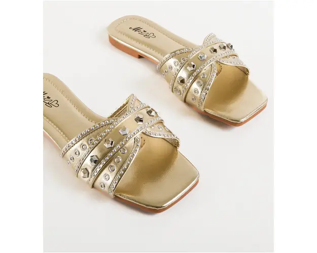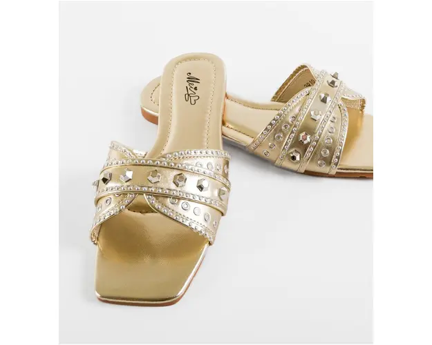 Produsul cu denumirea Papuci dama Sydney Aurii face parte din brandul Mek, se afla in categoria Sandale cu toc si subcategoria