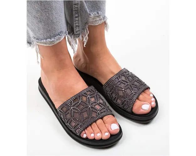 Produsul cu denumirea Papuci Flowers Gri 2 face parte din brandul Zoha, se afla in categoria Sandale cu toc si subcategoria