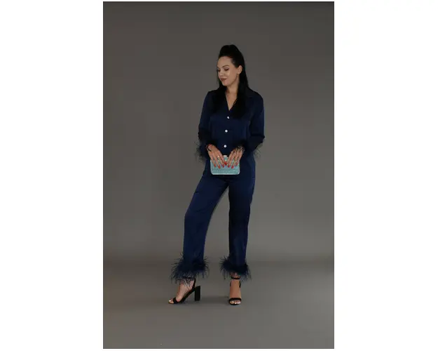 Pijama sofisticata din satin fin, cu accente de puf, ideala pentru un look elegant si confortabil in serile relaxante. Bluza cu croiala clasica, inchidere cu nasturi si mansete decorate cu puf, adaugand un aer de rafinament si delicatete. Pantalonii lungi au talie elastica, oferind o potrivire confortabila si flexibila. Satinul matasos confera pijamalei o stralucire discreta si o senzatie placuta pe piele, perfecta pentru un stil chic si sofisticat.Caracteristici:Compozitie: 97% poliester, 3% elastanBluza si pantaloniInformatii: Informatii Suplimentare La Telefon.Produse Realizate in Atelierul GLAMO. Produsul cu denumirea Pijama Puf Navy face parte din brandul , se afla in categoria Pijamale si subcategoria