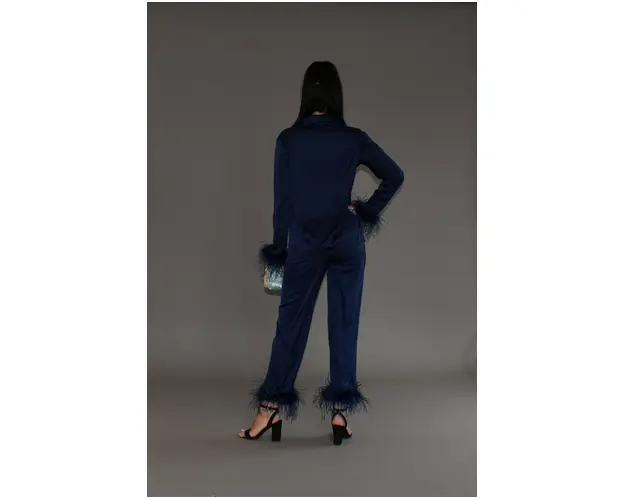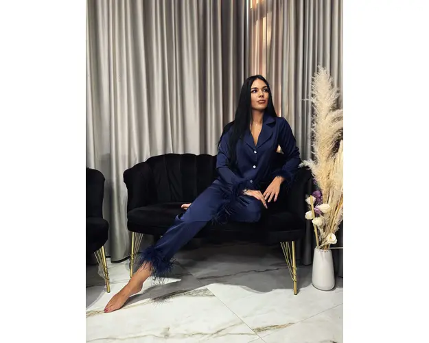Pijama sofisticata din satin fin, cu accente de puf, ideala pentru un look elegant si confortabil in serile relaxante. Bluza cu croiala clasica, inchidere cu nasturi si mansete decorate cu puf, adaugand un aer de rafinament si delicatete. Pantalonii lungi au talie elastica, oferind o potrivire confortabila si flexibila. Satinul matasos confera pijamalei o stralucire discreta si o senzatie placuta pe piele, perfecta pentru un stil chic si sofisticat.Caracteristici:Compozitie: 97% poliester, 3% elastanBluza si pantaloniInformatii: Informatii Suplimentare La Telefon.Produse Realizate in Atelierul GLAMO. Produsul cu denumirea Pijama Puf Navy face parte din brandul , se afla in categoria Pijamale si subcategoria