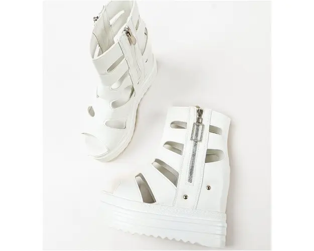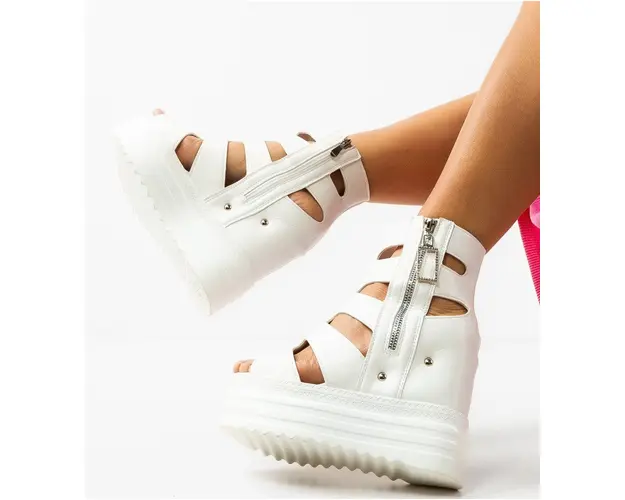 Produsul cu denumirea Platforme dama Cecilij Albe face parte din brandul Mek, se afla in categoria Sandale cu toc si subcategoria