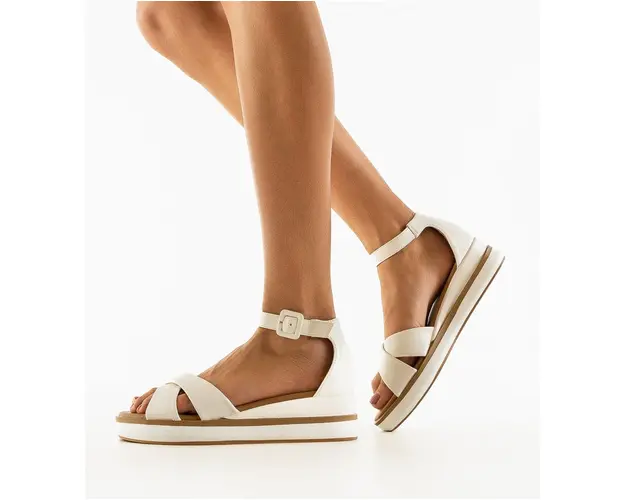 Produsul cu denumirea Platforme dama Chania Albe face parte din brandul Mek, se afla in categoria Sandale cu toc si subcategoria