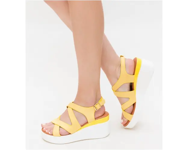 Produsul cu denumirea Platforme Edis Galbene face parte din brandul Mek, se afla in categoria Sandale cu toc si subcategoria