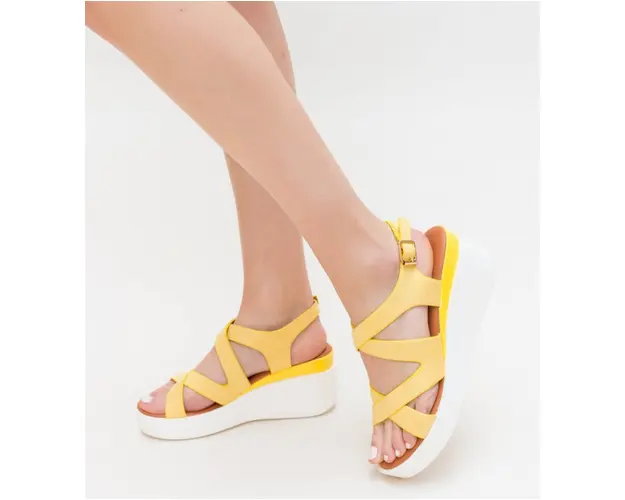 Produsul cu denumirea Platforme Edis Galbene face parte din brandul Mek, se afla in categoria Sandale cu toc si subcategoria