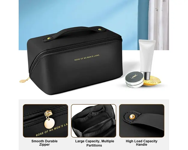 Detalii produs: 1 compartiment principal; 2 buzunare interiore cu elastic; 1 buzunar interior cu fermoar; interior captusit; impermeabil: Dimensiuni: 25 x 12 x 12.5 cm Important : Culoarea produsului poate varia usor datorita luminozitatii monitorului. Din cauza varietatii instrumentelor de masura, pot exista usoare erori de cm, informatiile de mai sus sunt aproximative. Produsul cu denumirea Portfard, geanta cosmetice Chabela, PT1051, Negru face parte din brandul Delis, se afla in categoria Accesorii si subcategoria