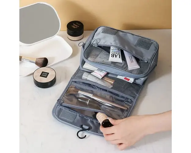 Detalii produs: 1 compartiment principal; 3 buzunare interiore cu fermoar; 1 umeras de agatare (max. 4 kg) interior captusit; material: poliester impermeabil: Dimensiuni: 24 x 10 x 18 cm Important : Culoarea produsului poate varia usor datorita luminozitatii monitorului. Din cauza varietatii instrumentelor de masura, pot exista usoare erori de cm, informatiile de mai sus sunt aproximative. Produsul cu denumirea Portfard, geanta cosmetice Fergie, PT1124, Negru face parte din brandul Delis, se afla in categoria Accesorii si subcategoria