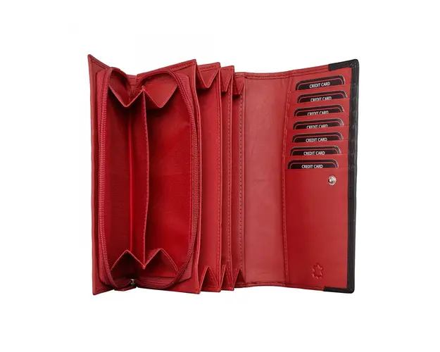 Portofel dama Delis, Bluma PT1221, piele naturala, Rosu/Negru