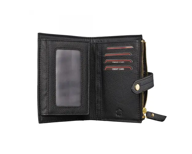 Portofel dama Delis, Leandra PT1234, piele naturala, Negru