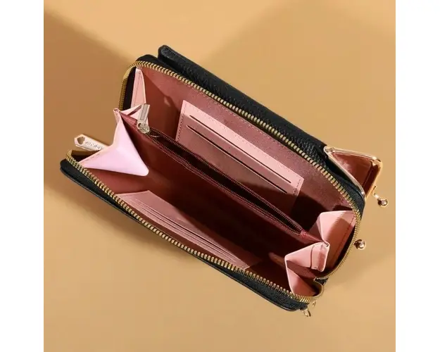 Un portofel modern, care datorita baretei de umar detasabila, ajustabile se poate transforma cu usurinta intr-o gentuta potrivita pentru acte, bani, telefon, carduri! Detalii produs: doua compartimente bancnote, separate de un buzunar ce se inchide cu fermoar; un compartiment pentru monede; 6 compartimente pentru carduri; Dimensiuni: 17 x 11 x 5 cm Important : Culoarea produsului poate varia usor datorita luminozitatii monitorului. Din cauza varietatii instrumentelor de masura, pot exista usoare erori de cm, informatiile de mai sus sunt aproximative. Produsul cu denumirea Portofel tip geanta, Angela PT515, model negru face parte din brandul Pfy, se afla in categoria Fete si subcategoria